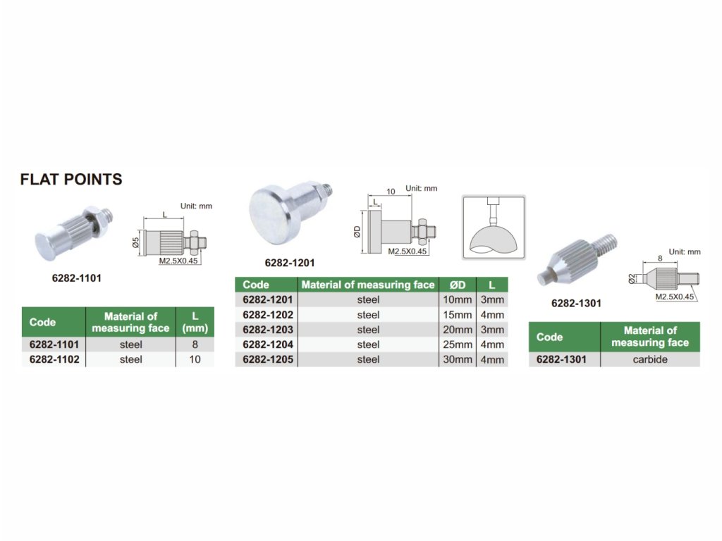 Vârf palpator plat pentru ceasuri comparatoare Ø20mm, 6282-1203 INSIZE