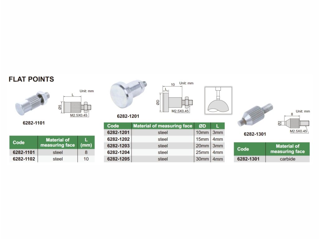 Vârf palpator plat pentru ceasuri comparatoare 8 mm, 6282-1101 INSIZE