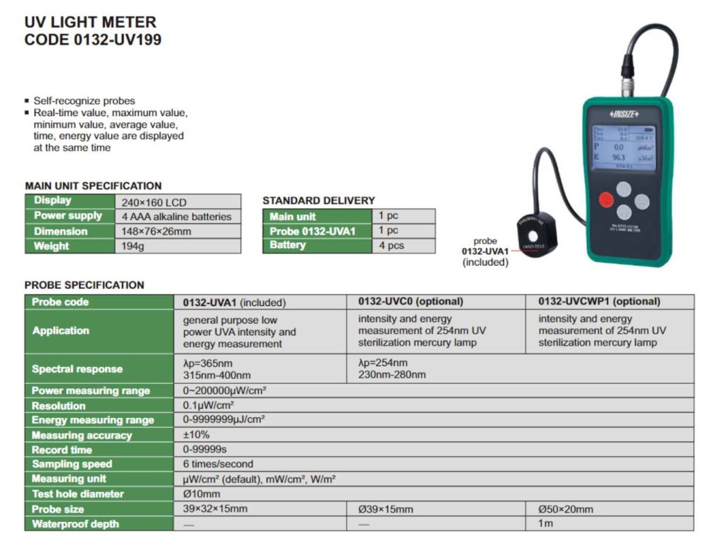 Luxmetru digital cu sondă 0132-UV199 INSIZE