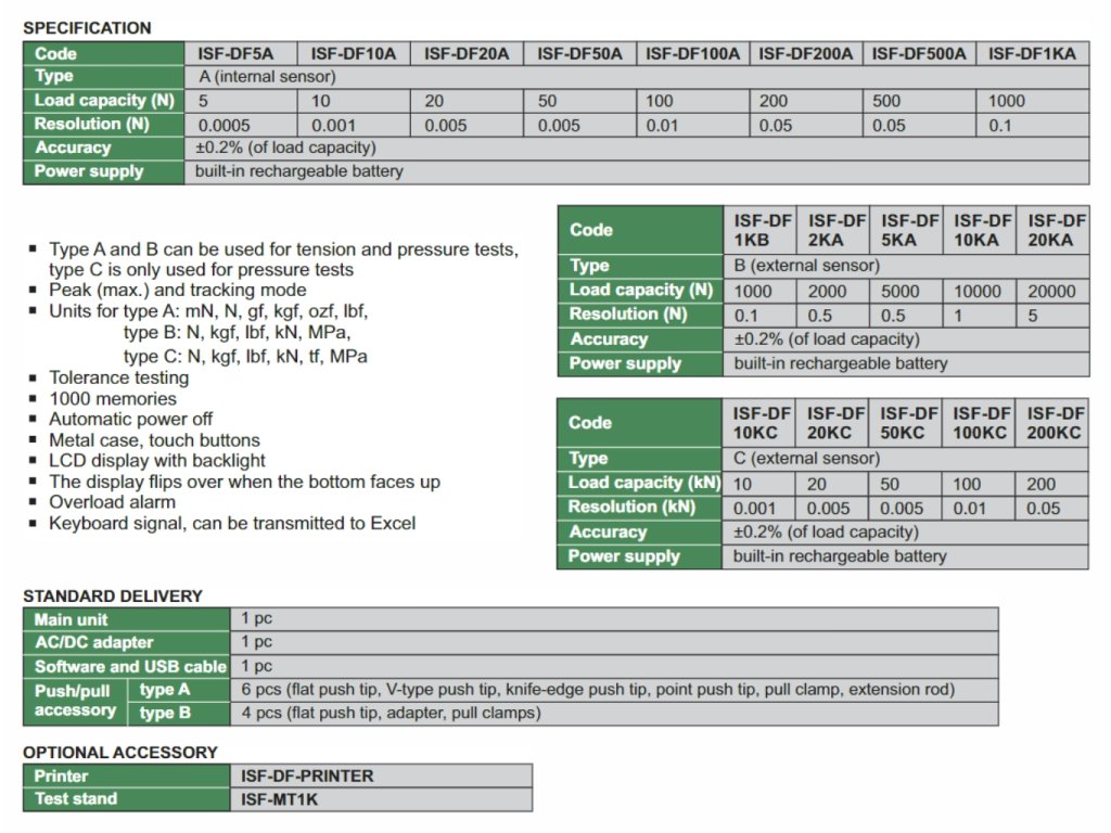 - 5 accesorii pentru diferite tipuri de măsurare (împingere/presiune)