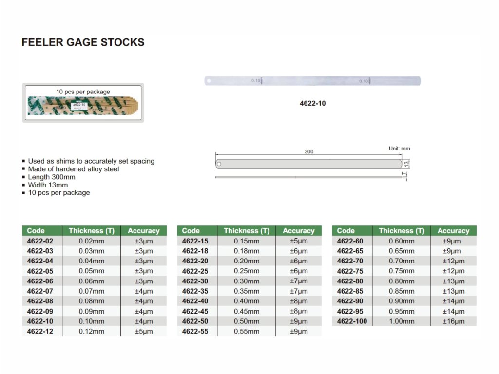 Folii calibrate de la Insize din oțel aliat călit, cu lungimea de 300 mm lățimea de 13 mm.