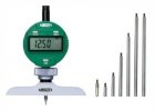Ceas comparator mecanic de adâncime de la Insize, cu talpă de 63×17 mm, interval 0-300 mm, precizie ±0,03 mm. Include cinci tije de extensie.