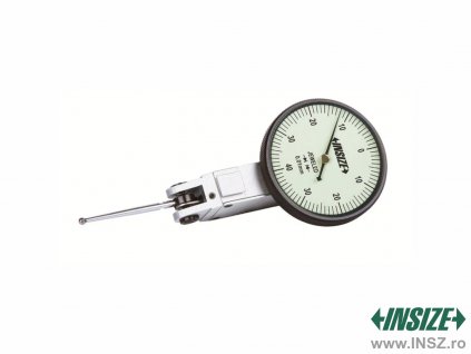Ceas comparator mecanic de la INSIZE, cu interval de măsurare 5 mm, rezoluție 0,01, precizie 14 µm, carcasă spate plată.