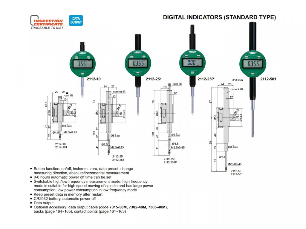Ceas comparator digital standard INSIZE cu interval de măsurare 25,4 mm, rezoluție 0,01 mm, precizie de măsurare 20 µm, cu port ieșire date.