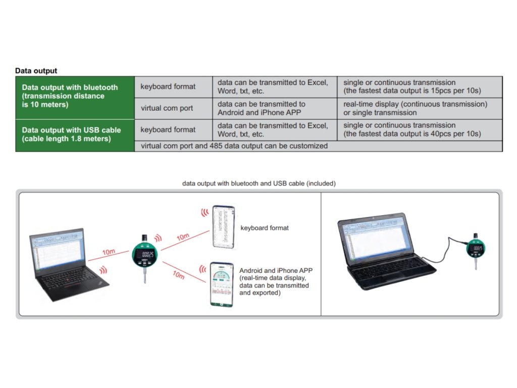 Ceas comparator digital de înaltă precizie de la Insize, cu interval de măsurare 12,7 mm, precizie 2 µm, transfer de date prin Bluetooth.