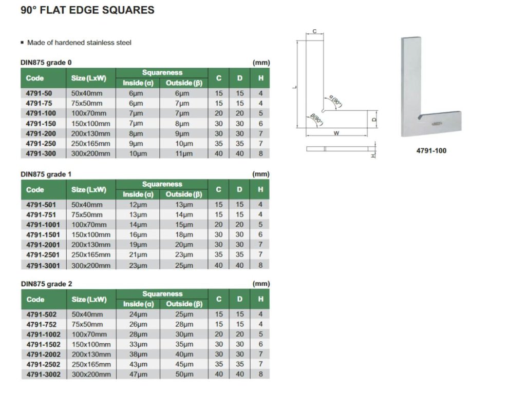 Echer plat de precizie 100x70 mm, clasă de precizie 2 INSIZE