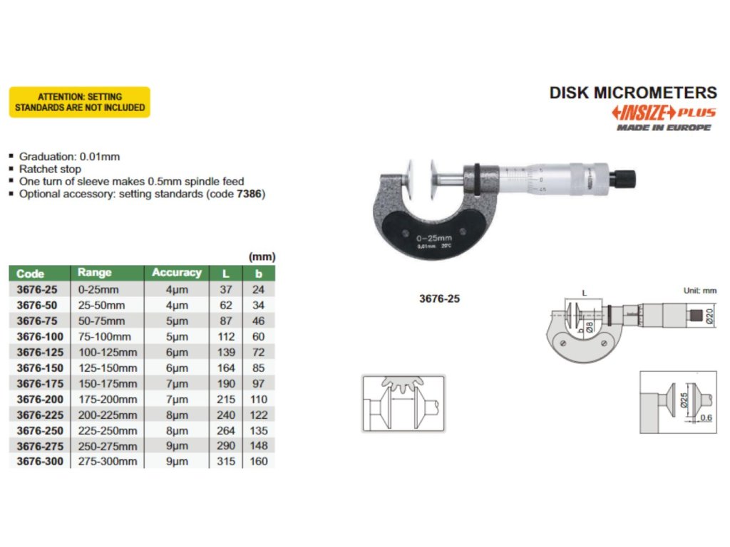 Micrometru mecanic cu discuri 250-275/0,01 mm 3676-275 INSIZE PLUS