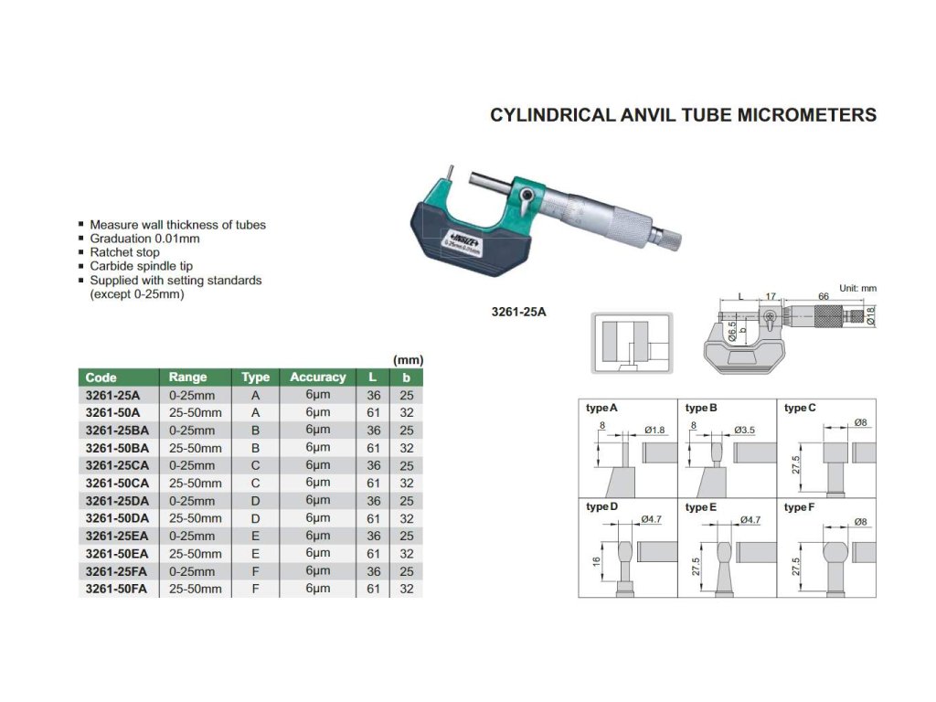 Micrometru mecanic 0-25/0,01 mm cu nicovală cilindrică 3,5 mm, tip B INSIZE
