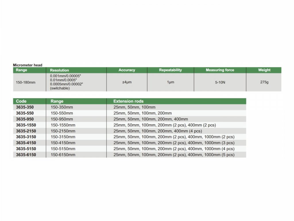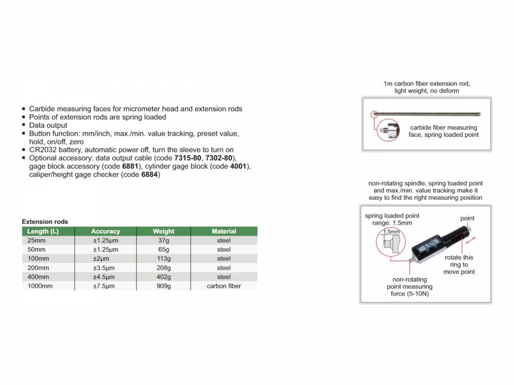 - Cap de micrometru și tije de extensie cu suprafețe de măsurare din carbură