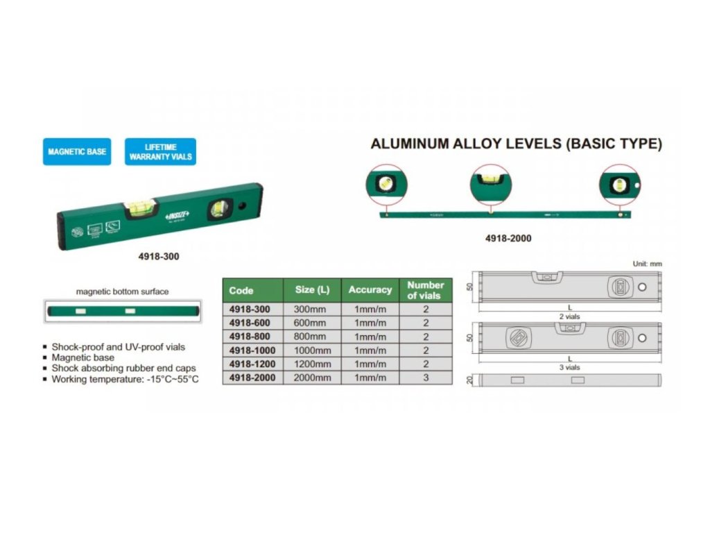 Nivelă de la Insize cu bază magnetică, precizie de măsurare +/- 1 mm/m.
