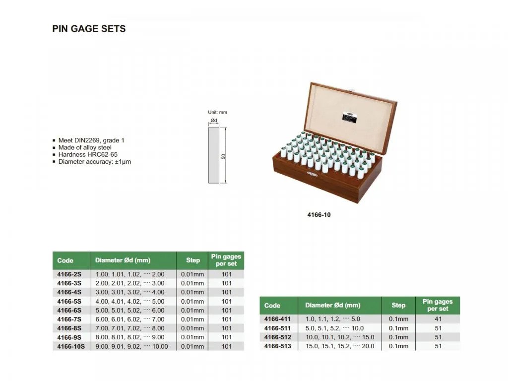 Set pini cilindrici de măsurare din oțel 13,00 – 13,50 mm 4166-13D INSIZE