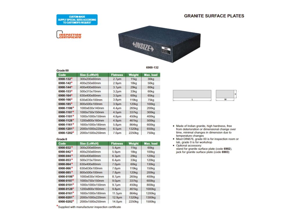 Placă din granit 1000x630x140 mm, clasă de precizie 0, DIN876 INSIZE