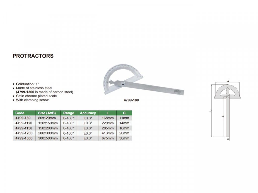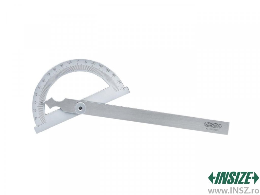 Raportor din oțel inoxidabil de la Insize, cu dimensiuni 80x120 mm, interval 0-180° și precizie 0,3°.
