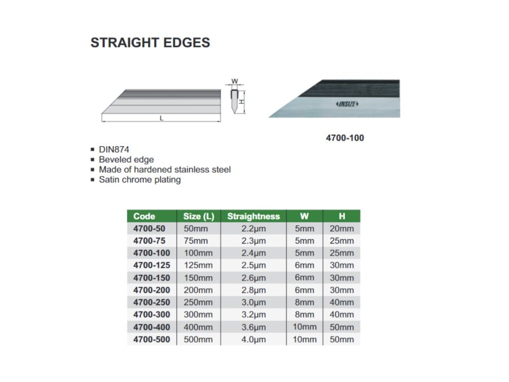 Riglă pentru măsurarea planeității cu muchie teșită de la Insize. Fabricată din oțel inoxidabil rezistent la uzură, cu finisaj din crom satinat.