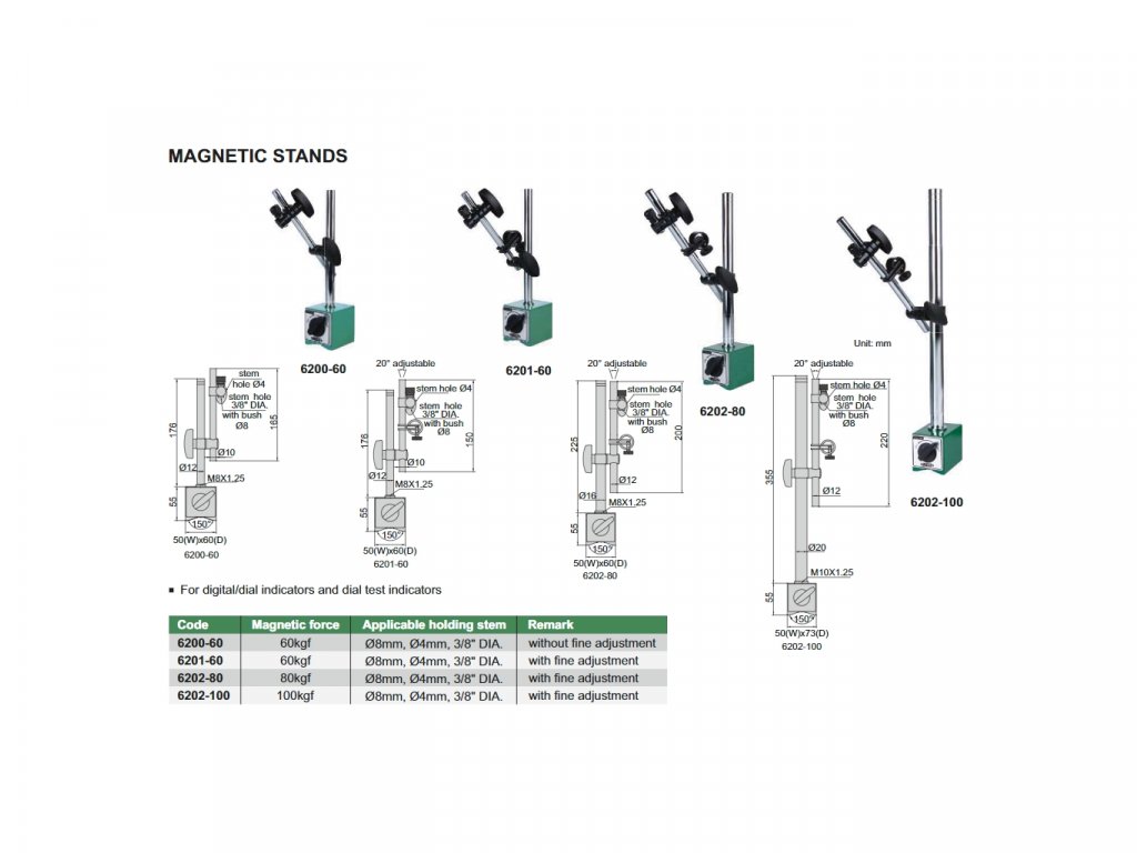 Suport magnetic universal INSIZE cu forță magnetică 80 kgf și diametru de prindere 4 sau 8 mm, cu reglaj fin.