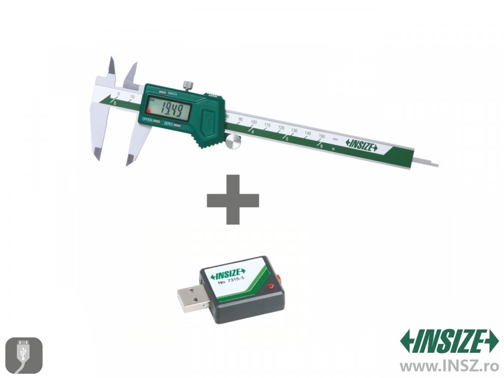 Set: șubler digital 200/0,01 mm cu ZigBee integrat + receptor date cu un canal INSIZE
