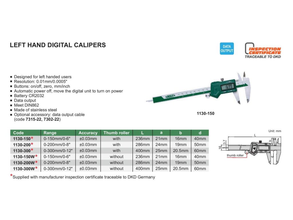 Șubler digital 300/0,01 mm pentru utilizare cu mâna stângă INSIZE